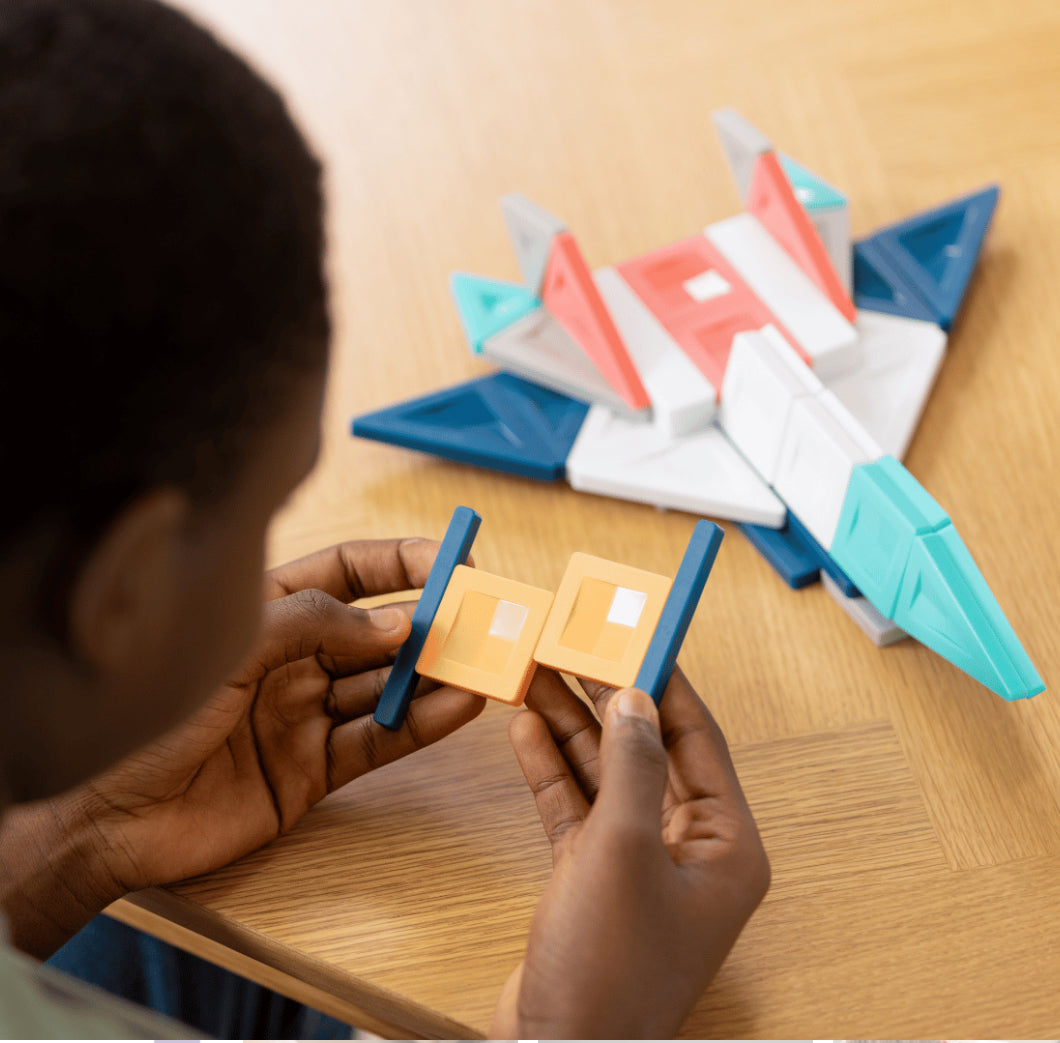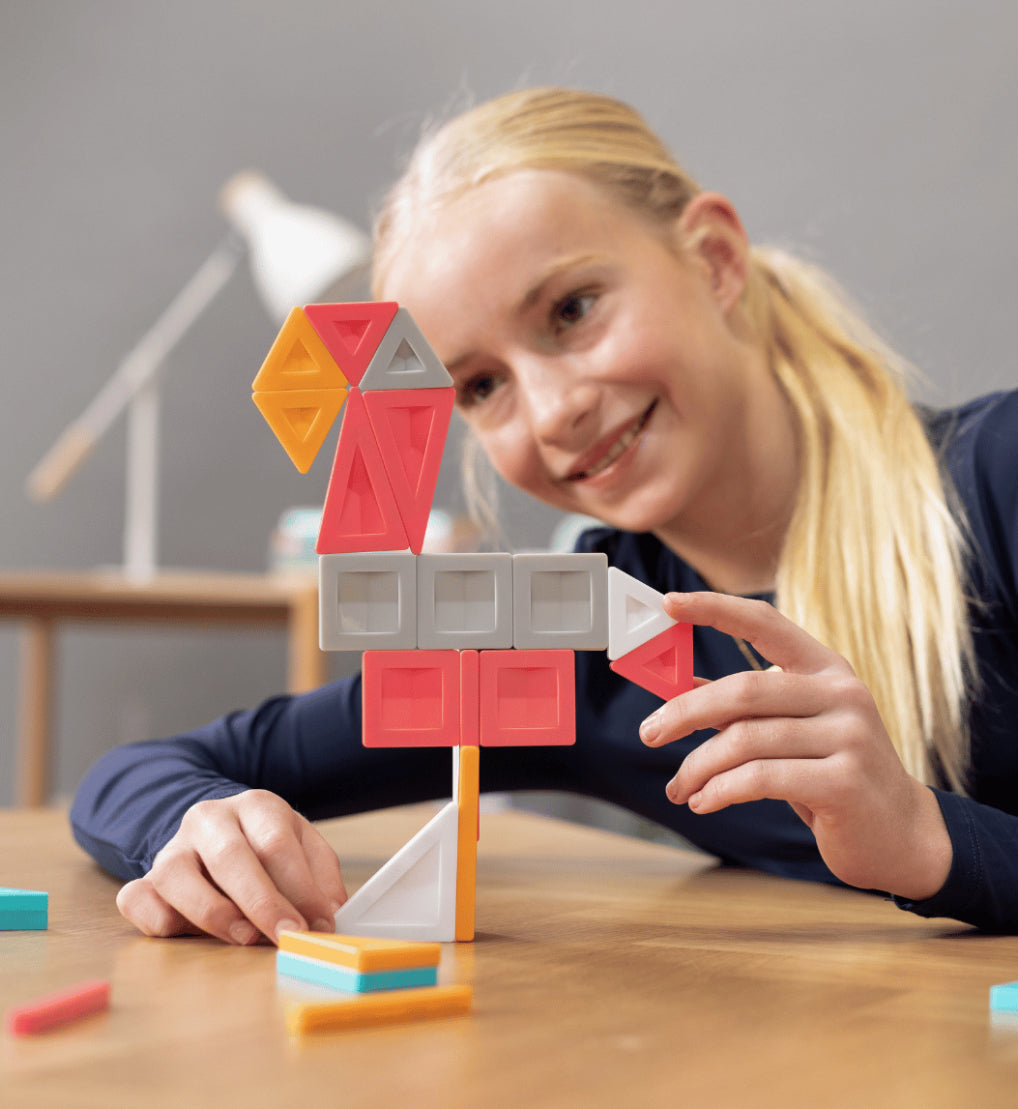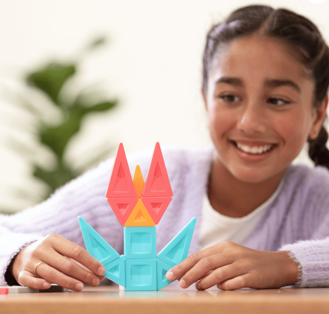 Not limited to set magnet positions, the Smart-Spin technology allows PRO creators to overlap, offset and stagger tiles in creative new ways to bring their designs to life and discover limitless STEAM learning possibilities. From engineering boats and robots, to designing interiors and furniture, creating characters and creatures, plus so much more! Featuring a range of intricate pieces including squares, rectangles, three types of triangles, plus post and plank pieces, this open-ended construction set is designed to inspire more complex, detailed and functional creations. What’s more, the extra-strong magnets allow creators to pick up and share their unique designs with friends, from flying an aerodynamic plane to roaming characters through a universe – the PROs push the limits of construction and take interactivity to a whole new level!