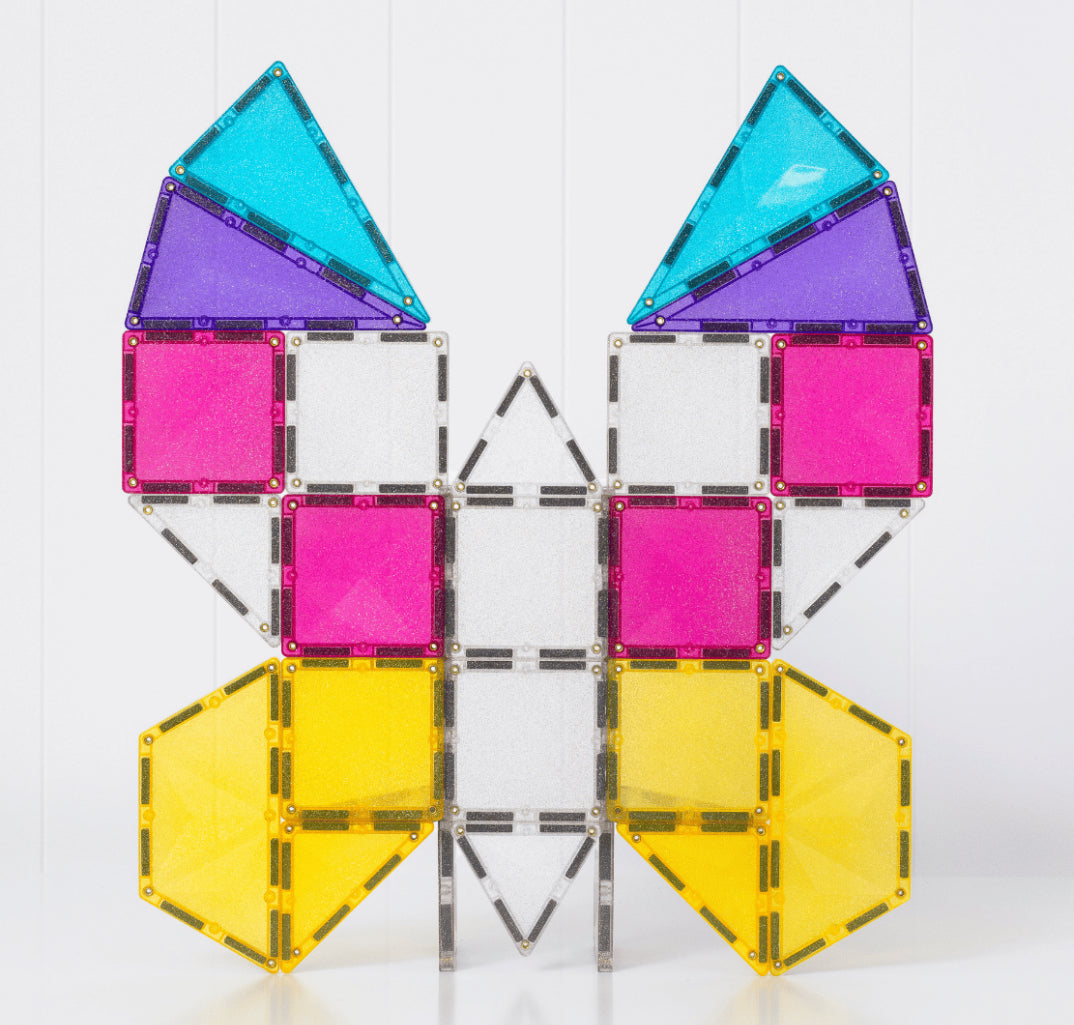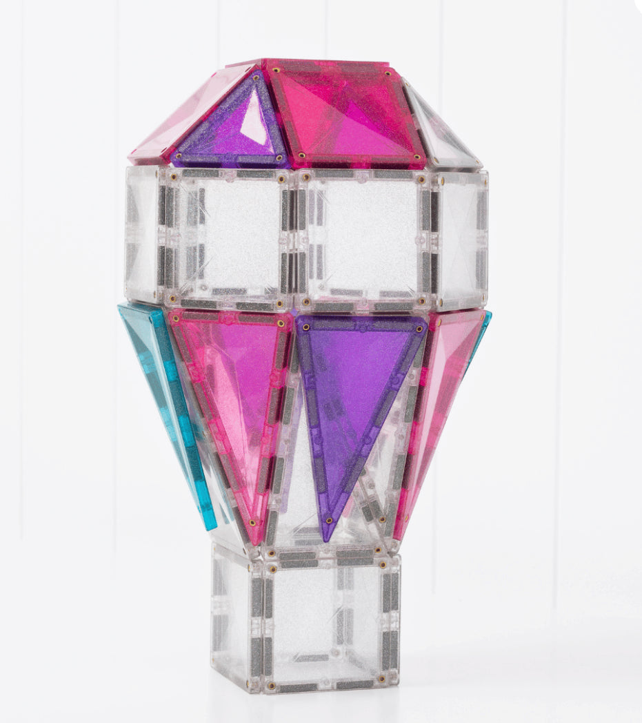 Designed for the unicorn lovers, fantasy dreamers and creative explorers, this pack is filled with delightful play possibilities. Featuring a stunning combination of glitter magnetic tiles in dazzling clear and vibrant bright colours of pink, yellow, teal and purple, plus a thoughtful selection of shapes in squares, hexagons, rectangles, triangles and trapezoids to bring your sparkly unicorn creation to life!