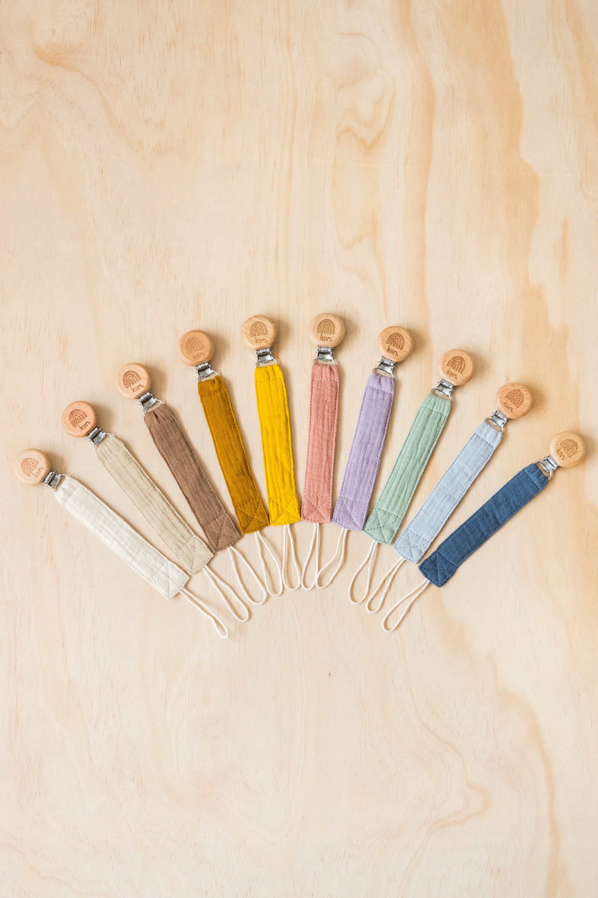 Keep your little one's dummy within reach with one of our cotton dummy clips! Dummy clips help to keep your baby’s dummy clean, ensuring that it is off the floor and doesn’t get lost. This is a great baby shower gift! With 10 colours available, it is perfect for a gender neutral baby shower or nursery.
