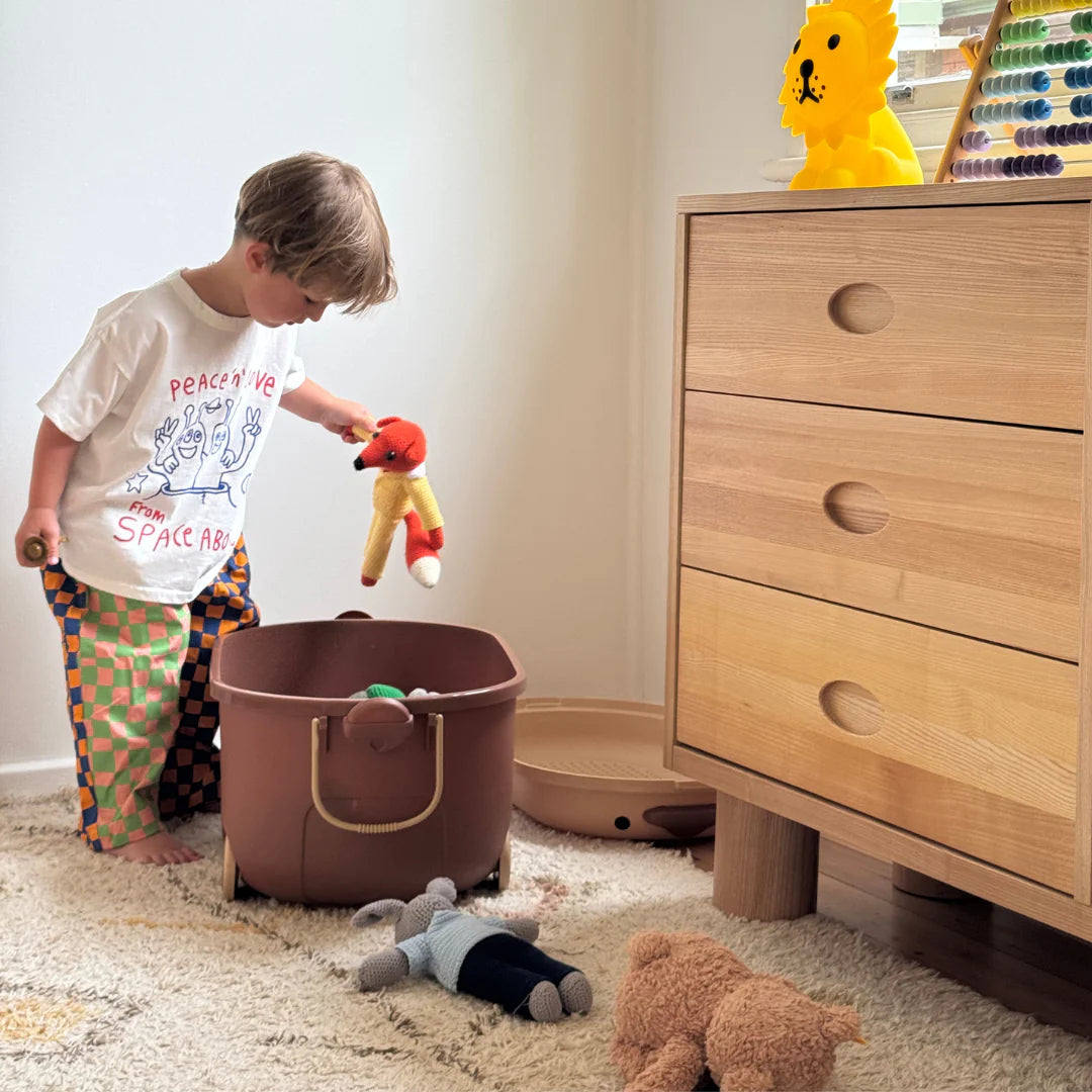 These little storage boxes are so handy and can be rolled around the house depending on the day’s activities.