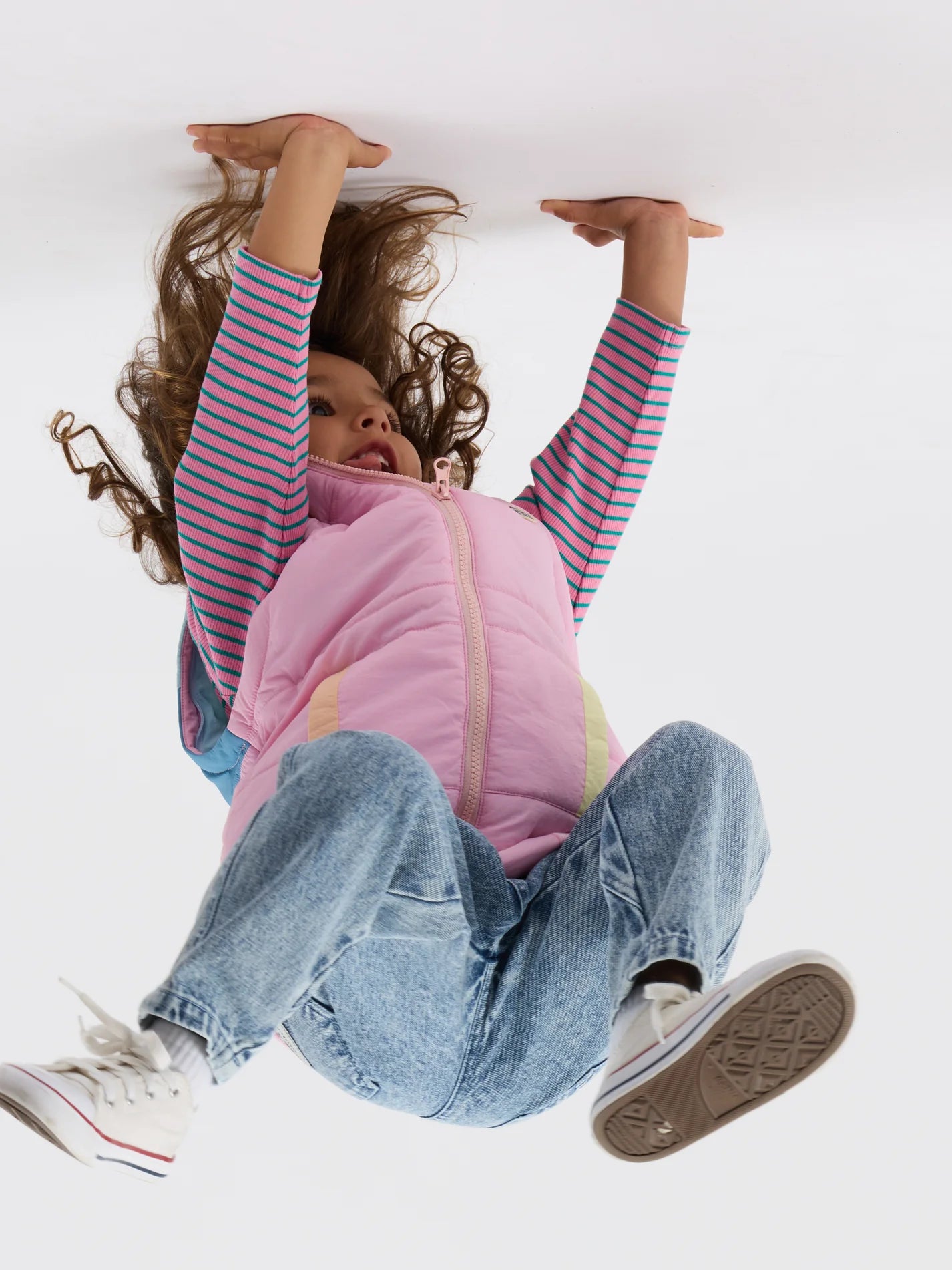 Studio model (in sunrise vest) is 115cm and wears size 4Y