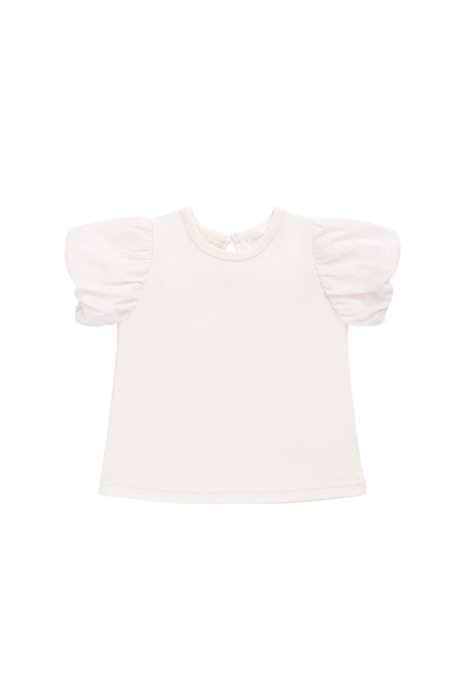 The Myla Top in Blushed Rose is a dainty and elegant piece for your little one’s wardrobe. Featuring puffed short sleeves and a soft round neckline, this top offers a timeless silhouette in a gentle rose hue. Perfect for layering or wearing on its own, it’s a versatile essential with a touch of charm.