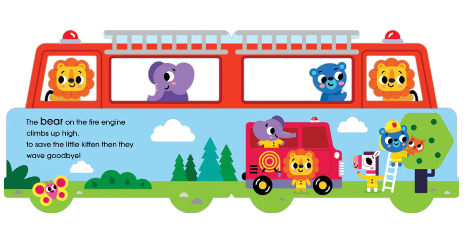 - Every turn of the page reveals a new character along for the ride on each spread!