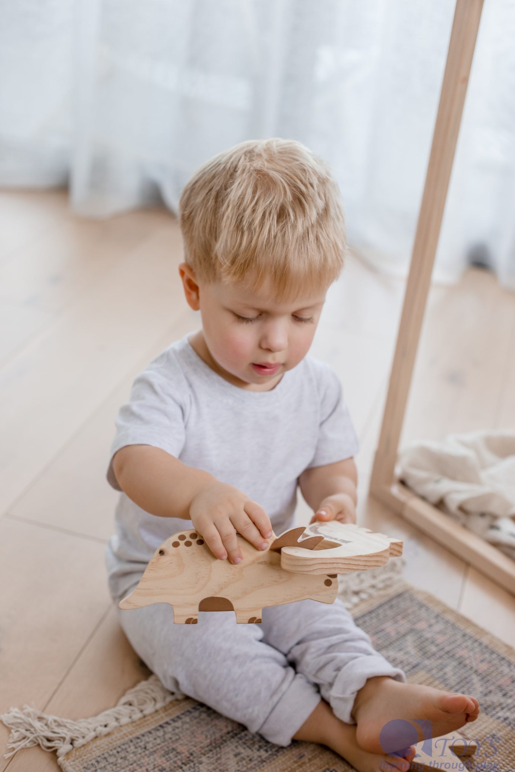 Dinosaurs have been connected to childhood memories for many of us. This simple yet informative dino play set is designed to free your child’s imagination with these legendary creatures. The back of each dinosaur has its own name. Children can use their imagination as they explore these dinosaurs. They can also learn to identify the names of each dinosaur during their pretend play experiences.