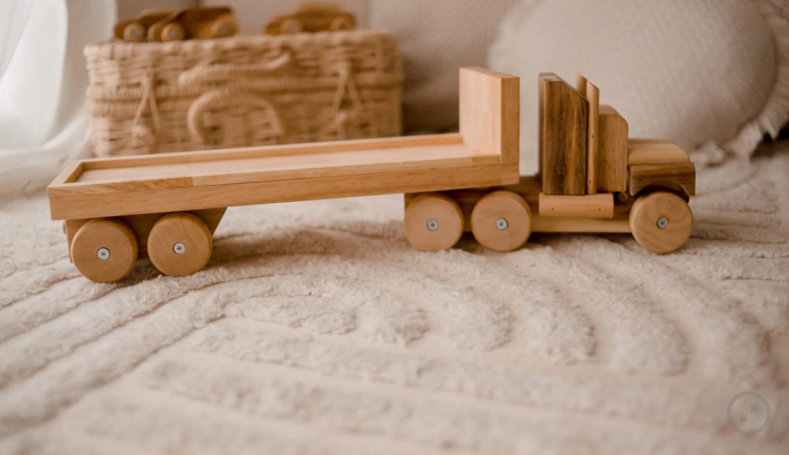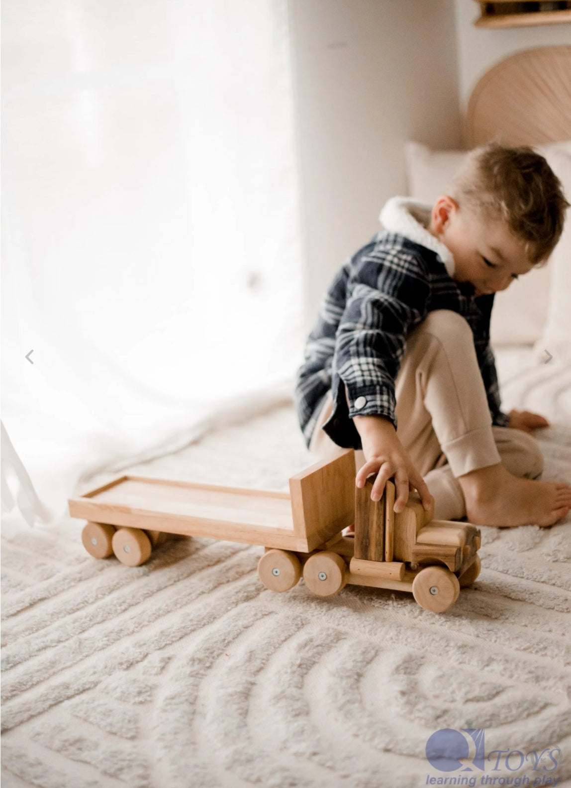 Discover the charm of the Qtoys Flat Back Truck, a standout in our series of vintage-style handmade trucks. This flat trailer truck captures the essence of classic vehicles with its intricately detailed design. Solidly built to endure hours of hardy play, it seamlessly combines aesthetic appeal with durability. The meticulous craftsmanship ensures that each truck is not only beautiful but also capable of standing the test of time, making it a treasured addition to any child’s toy collection.
