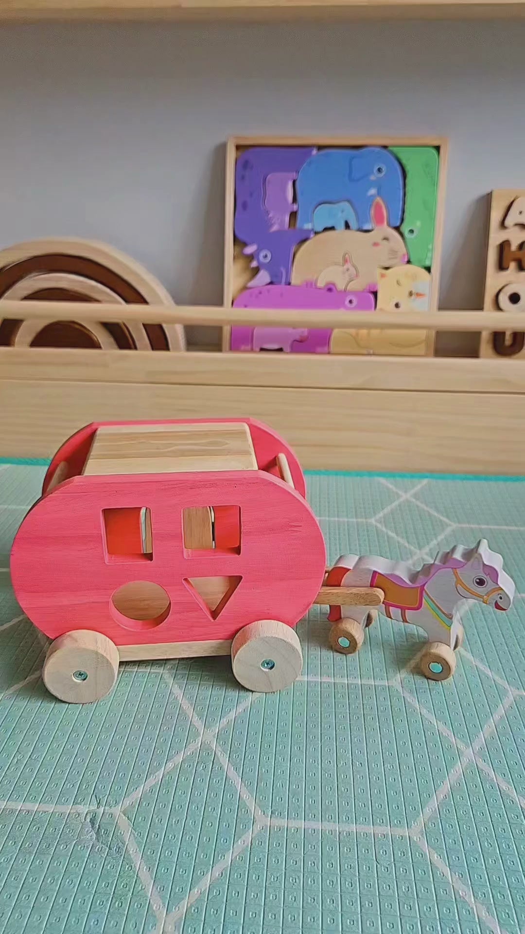Imaginative play is a cornerstone of early childhood development. This Sorting Horse Cart offers endless opportunities for storytelling and role-playing. As children embark on imaginary journeys, guiding their horse and cart through various adventures, they cultivate their social and emotional skills. They learn to express their ideas, engage with others in shared narratives, and build confidence in their creative abilities. This type of play also enhances language development as children describe the scenes they envision and the stories they create.
