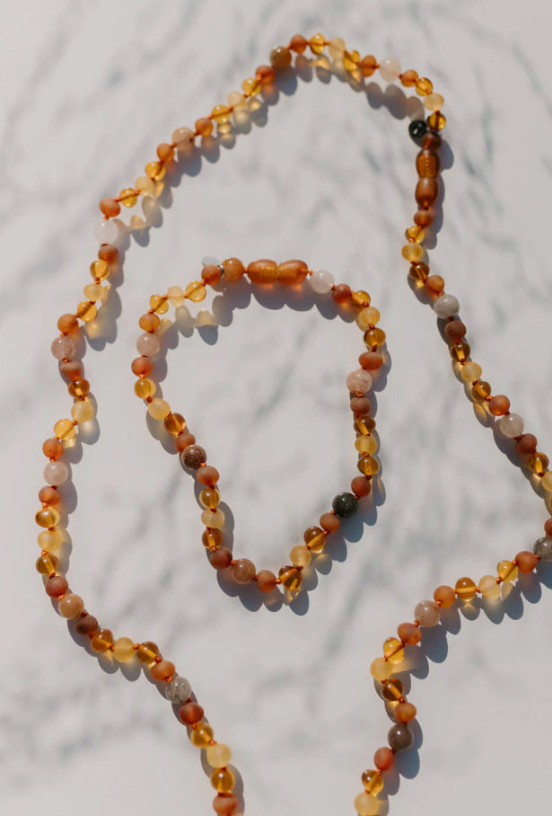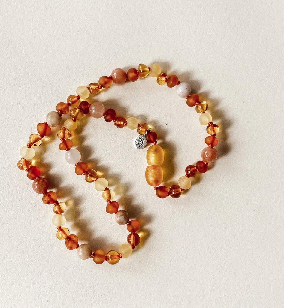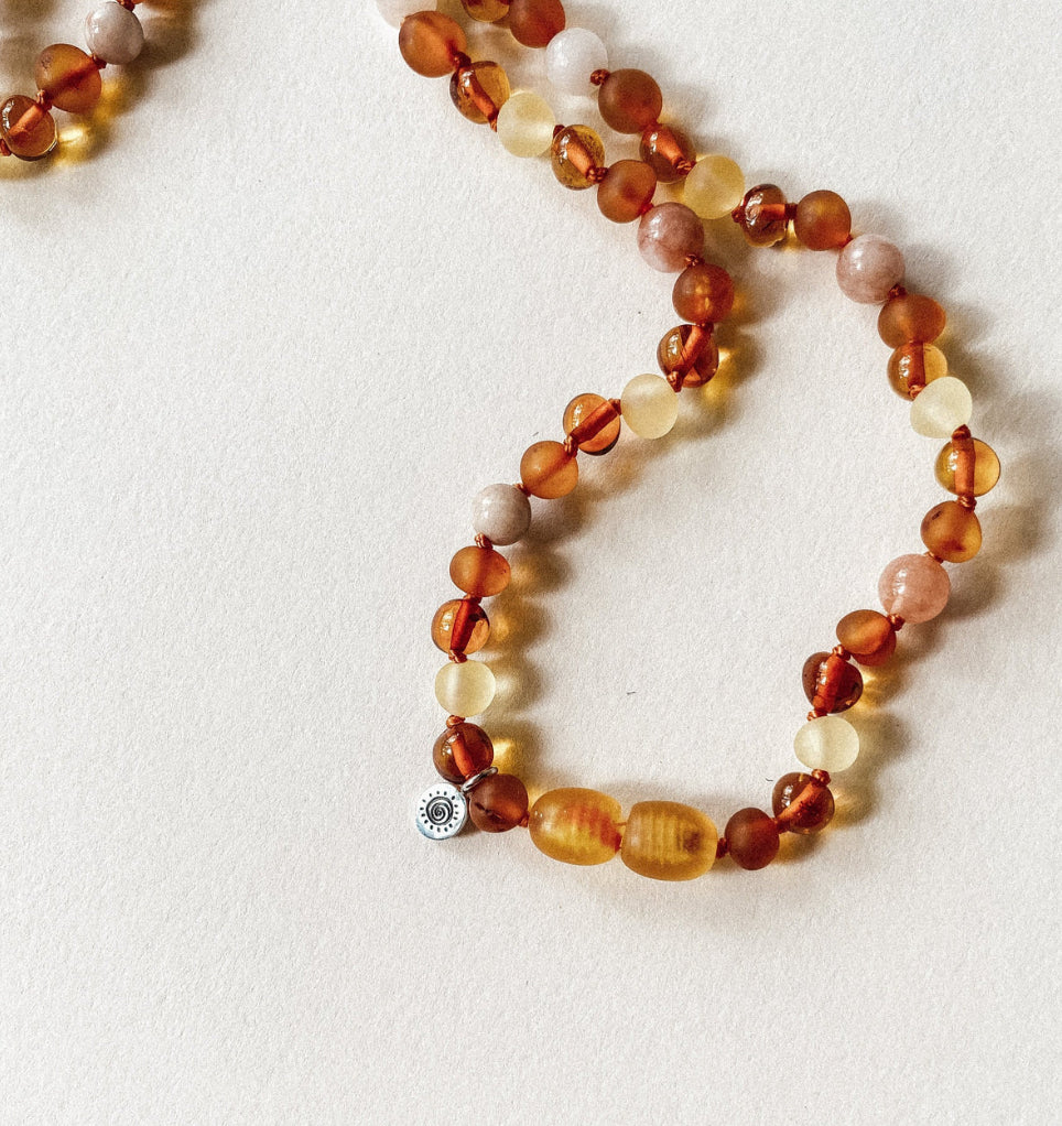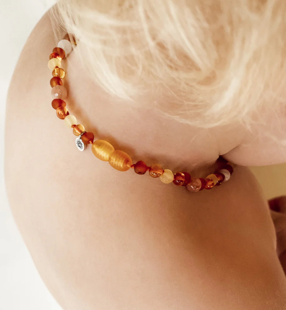 Amber contains a substance called Succinic Acid which is released when heated by the warmth of your little one’s skin. It’s the properties with the Succinic Acid that is believed to reduce inflammation and discomfort. A trusted pain relief by many cultures of the centuries.